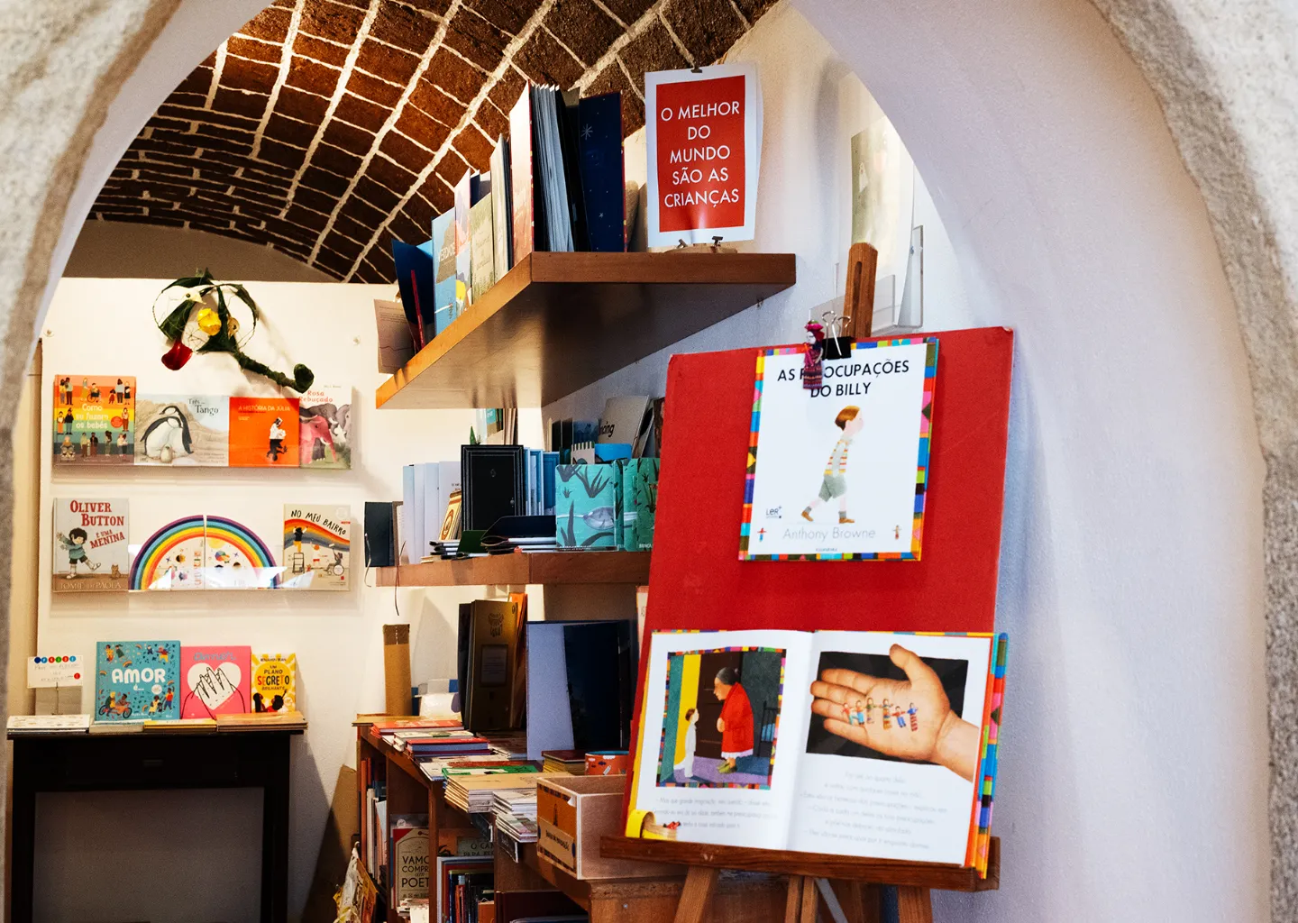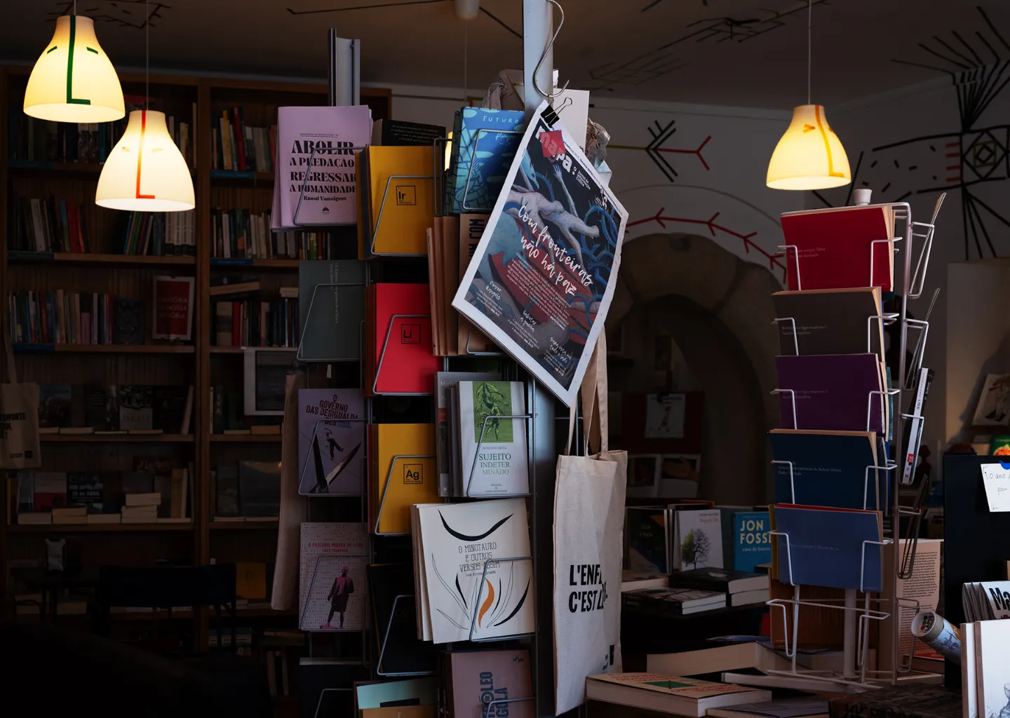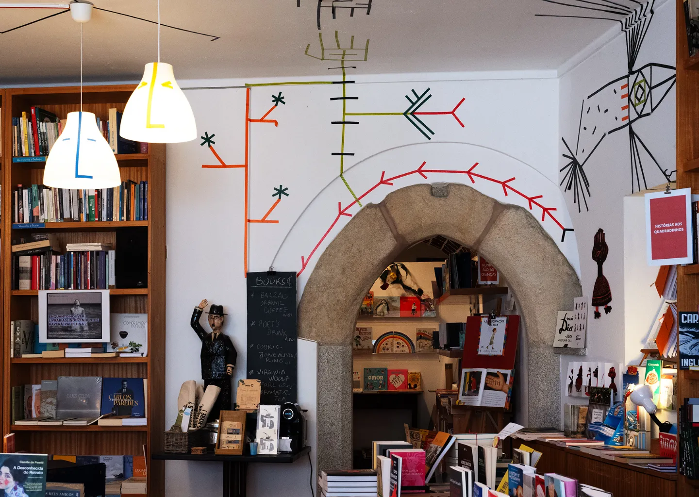 “Mulheres fora da prateleira”, “Revoluções e utopias”, “O que nos salva é a poesia” são algumas das categorias que podemos percorrer nas estantes da livraria. Também podemos tomar um café biológico Balzac ou um chá earl grey Virginia Woolf.